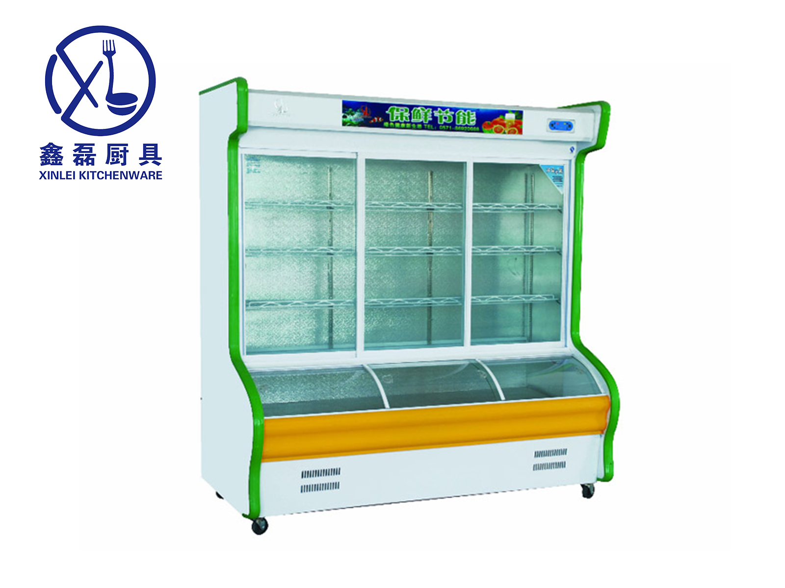 可用于放置蔬菜、肉类、鱼类等,展示产品并保鲜、冷冻;